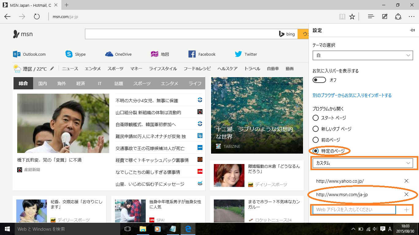 ☆☆☆☆☆ Windows 10 web起動画面で現在のページを使用の設定方法 ☆☆☆☆☆